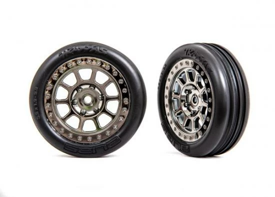 Traxxas Tyres + Wheels, Assembled (2.2 Black Chrome Wheels, Alias Ribbed 2.2 Tyres) (2) (Bandit Front, Medium Compound W/ Foam Inserts)